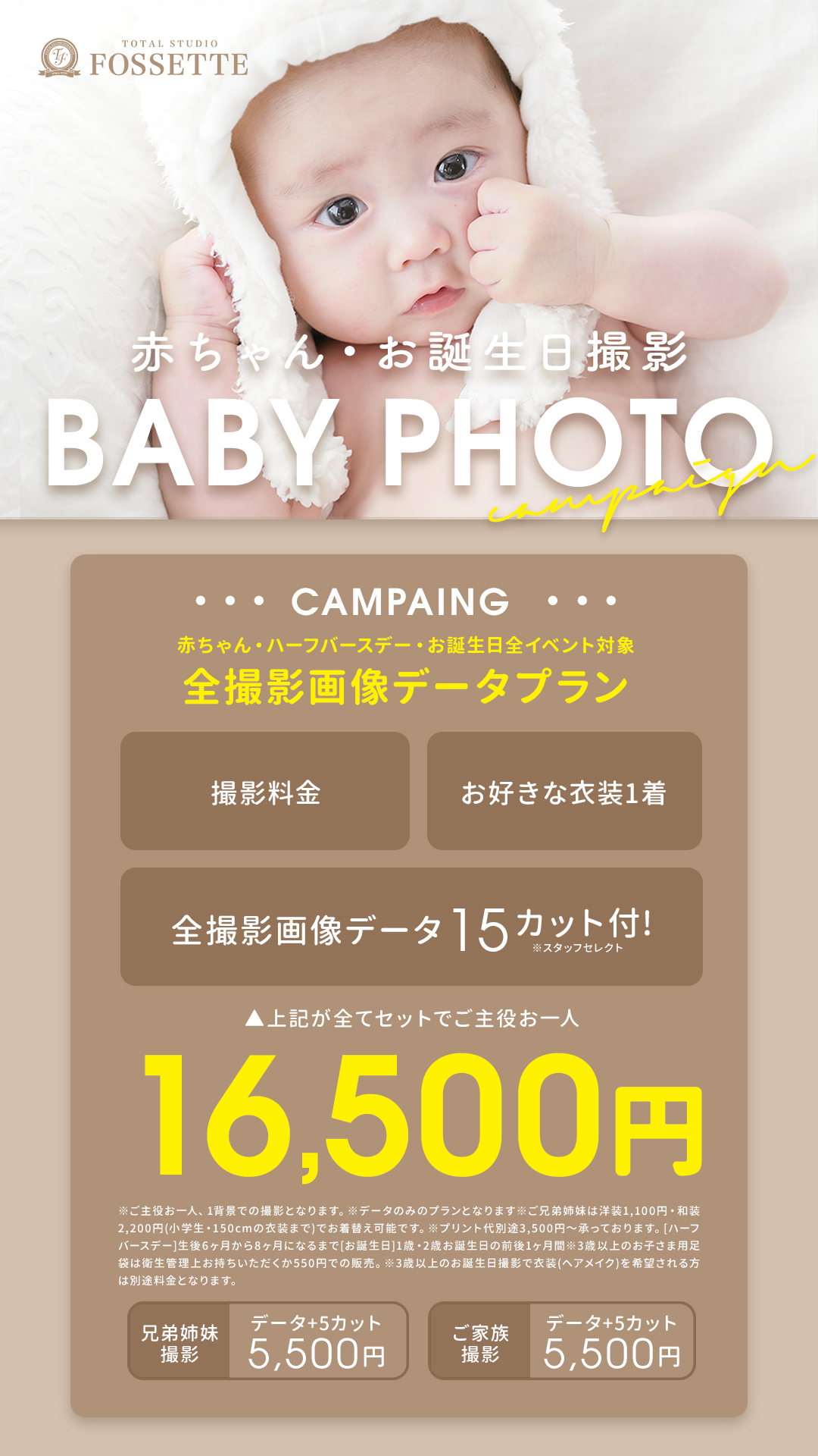 ~2025年11月30日 赤ちゃん・ハーフバースデー・お誕生日撮影限定プランのご案内 ・・・ 赤ちゃん・ハーフバースデー・お誕生日撮影 ・・・ 超オトクな限定プランを期間限定でご用意!! 是非この機会にあなたにピッタリのプランで思い出残してみませんか? ▶詳しくは特設ページから 一覧に戻る